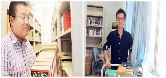 2014年6月22日,英国威廉希尔公司官网德语系教师利用德语培训中心DSH测试阅卷后的空余时间,一起整理了英国威廉希尔公司官网图书室内的德语书籍。