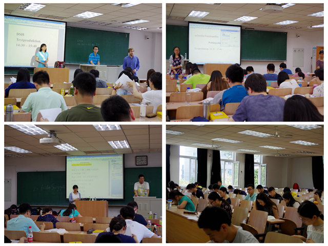 DSH笔试于6月18日14:30时进行,共有93名考生参加考试。经与卡理预科部商榷,此次考试改为小考场测试,将考生以班级为单位分配在三个考场,大大提升了考场的语音质量,在最大程度上保障了考试的基础条件,共有87名同学成功通过笔试,取得了参加口试的资格。